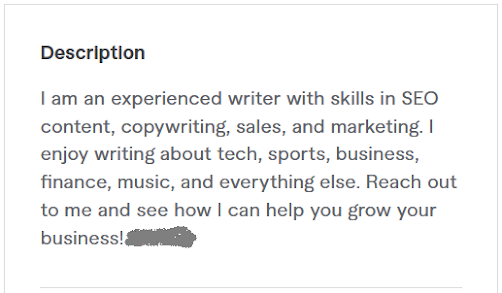 - A description is not just a ordinary description, it attracts your buyer, so try to be clarify about your skill and your service.